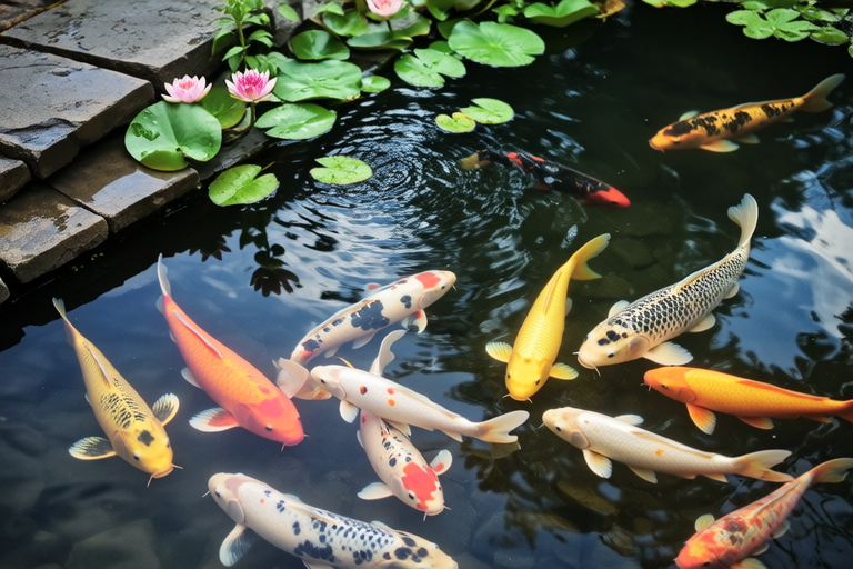- Predator Control: Protect your koi from predators by covering the pond with netting or installing motion-sensitive lights.