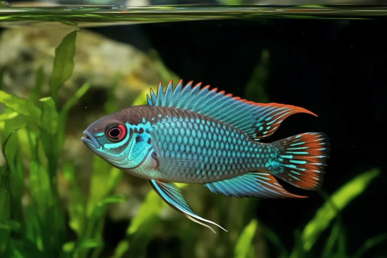 The Rajah Cichlid, scientifically known as Vicary’s cichlid or Aequidens rivulatus, is a striking freshwater fish native to South America. This cichlid is admired for its vibrant colors and impressive size, making it a popular choice among aquarium enthusiasts. Its robust body, adorned with iridescent blue, green, and yellow hues, adds a touch of elegance to any tank. Despite its aggressive nature, the Rajah Cichlid’s unique characteristics and care requirements make it an intriguing addition to any advanced aquarist’s collection.