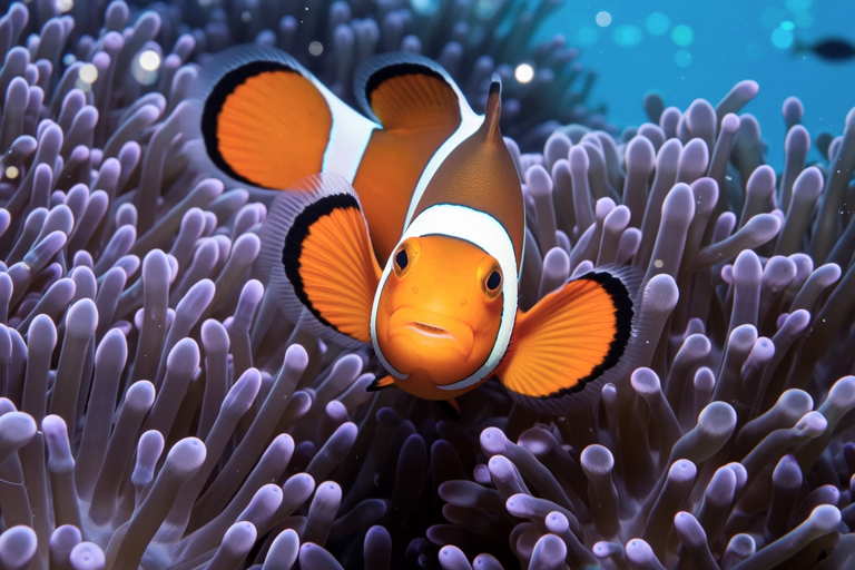 These different species of clownfish have adapted to live with various anemone species, each with its own set of characteristics and behaviors. For instance, some anemones are more aggressive than others, and the clownfish living with them have evolved thicker mucus layers and more cautious swimming patterns. Similarly, some anemones are more prone to hosting multiple clownfish pairs, leading to more complex social structures among the clownfish populations.